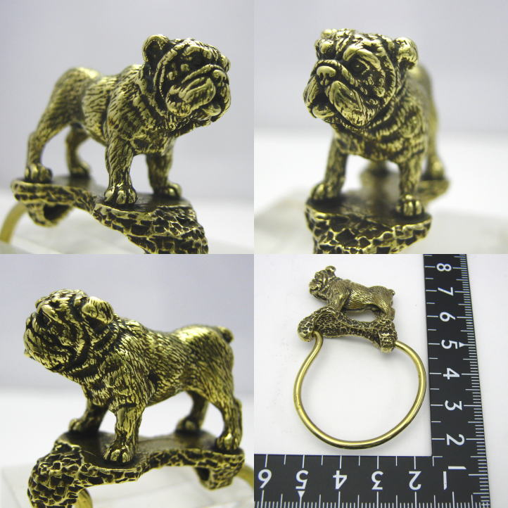 金色の闘犬 ブルドッグキーリング ブラス 真鍮(キーホルダー、キーチェーン、鍵、犬、ドッグ、Bull Dog、動物、フレンチブルドッグ)