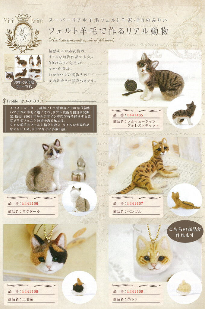茶トラ(手作りキット) 手芸キット(フェルト) ハマナカ ハンドメイド フェルト羊毛 ネコ 猫 cat マスコット きりのみりい キーホルダー ゆうパケット 送料無料