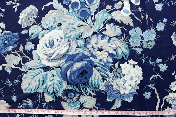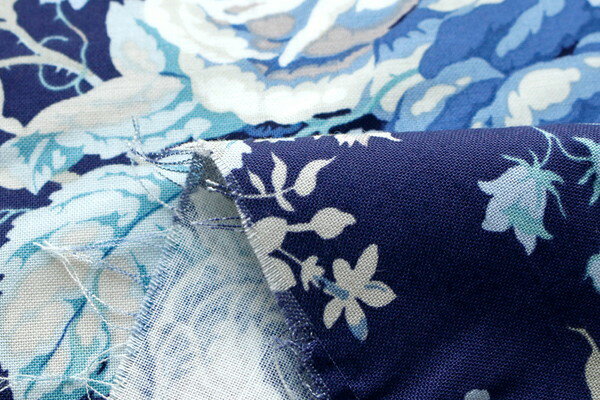 【NEW】 生地 FreeSpirit Fabrics フリースピリット 青地 公園のバラ (最低単位30cm〜10cm単位の切り売り)| つくる楽しみ