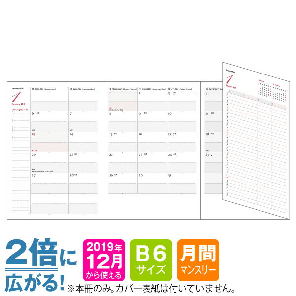 手帳 2020 年 1月始まり 12月から使える B6 2倍マンスリー 2MB6-リフィール m 大人かわいい おしゃれ スケジュール帳 ダイアリー シンプル 大人 可愛い デザイン カワイイ オシャレ プレゼント アーティミス